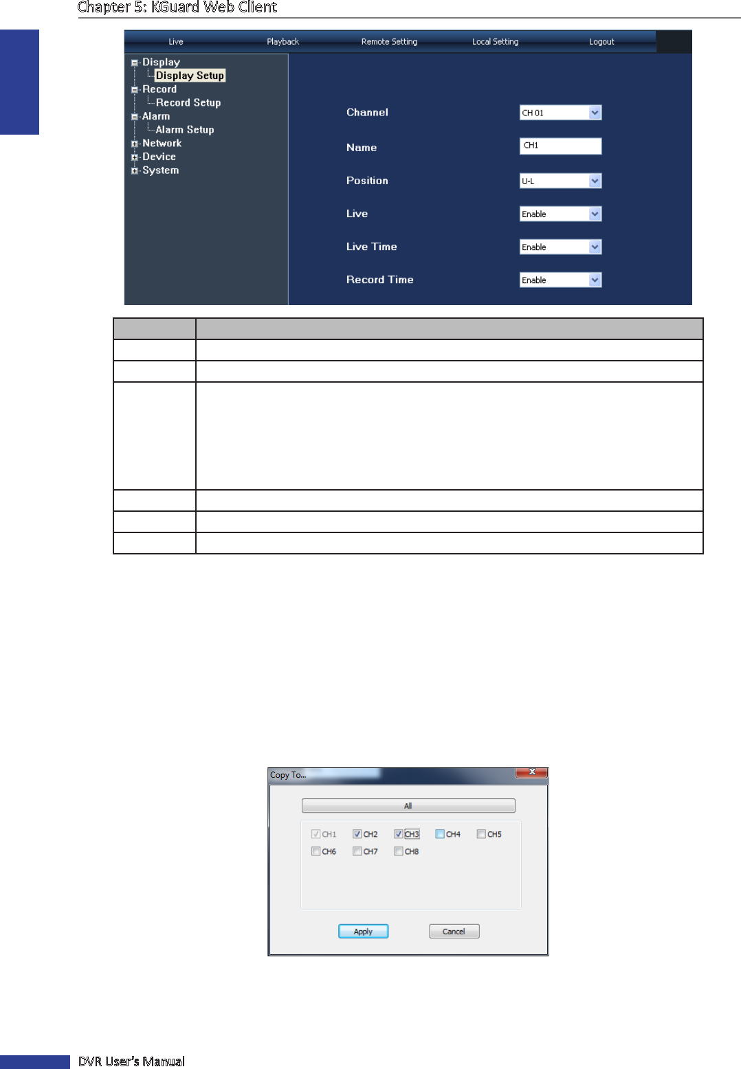 • To apply the same sengs to other channels (except the channel name), click Copy To at the boom of the