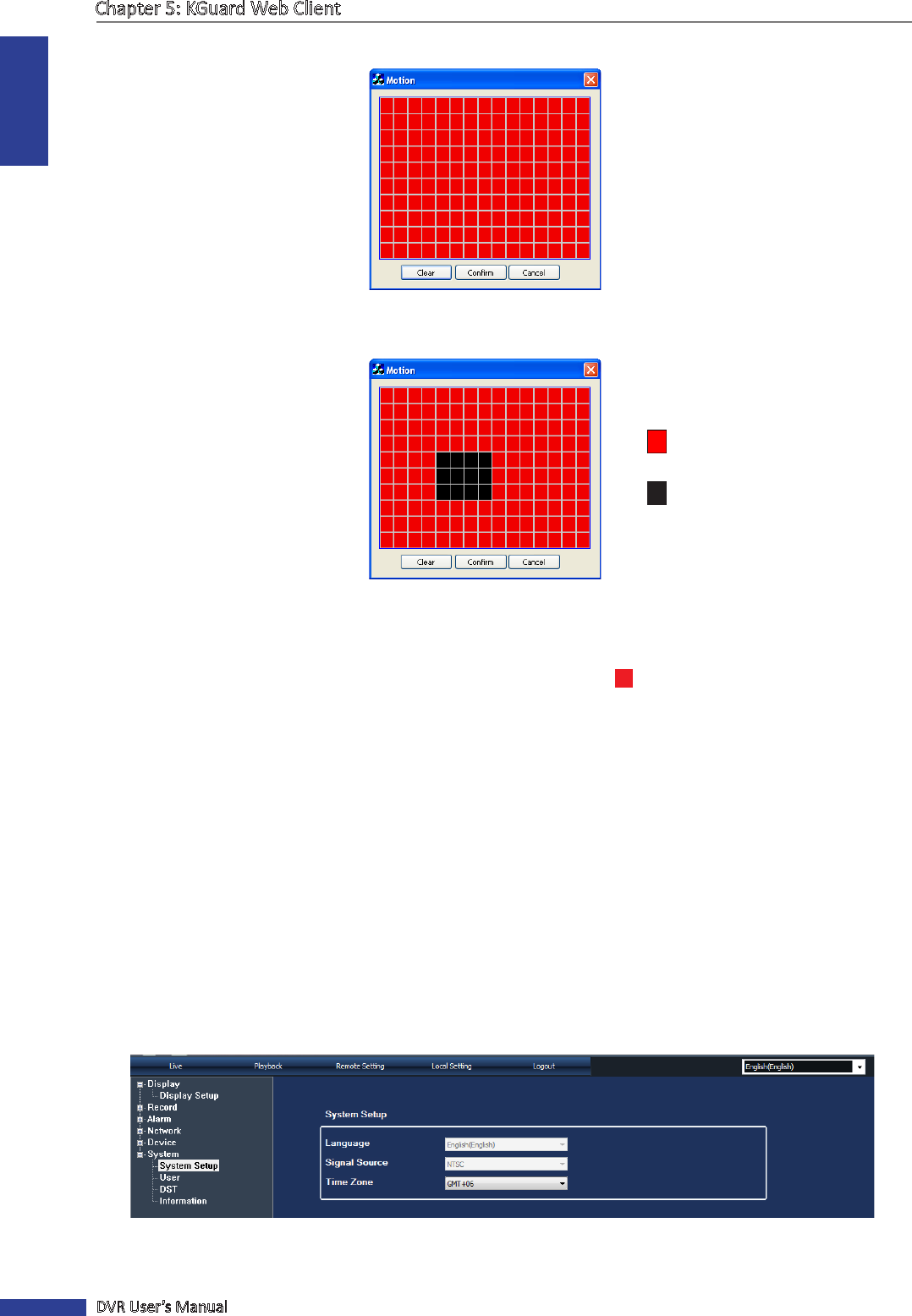 On the System Setup menu, you can modify the me zone and view the language used on the DVR and its signal