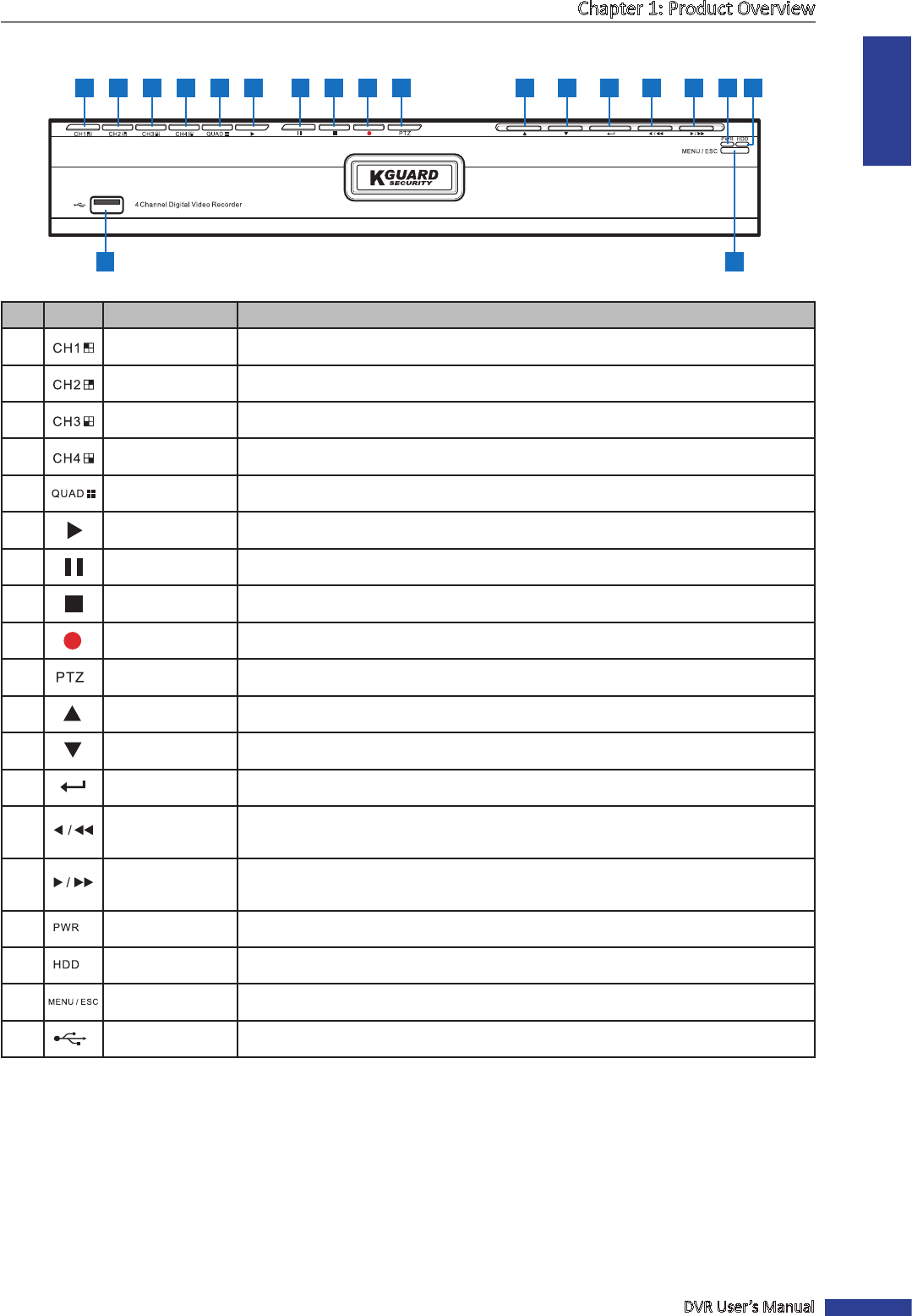18 Menu / Escape Press to enter or exit the OSD menu.
