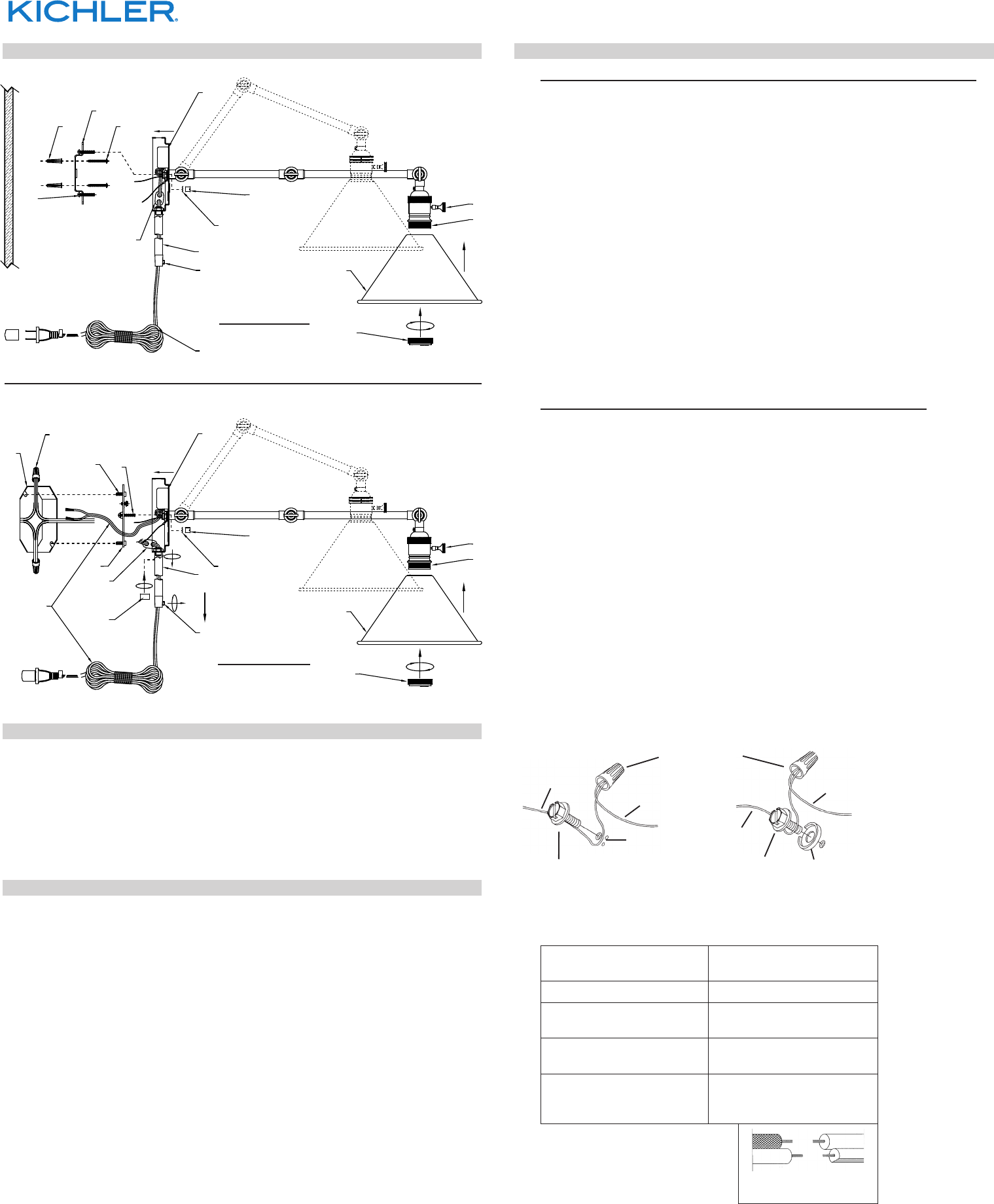 8) Make wire connecons using wire nuts[O]. Reference chart below for correct