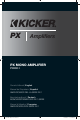 PX.1-SERIES AMPLIFIERS OWNER’S MANUAL MODEL: PX200.1 Authorized KICKER Dealer: Purchase Date: Serial Number: PERFORMANCE Model: PX200.1 RMS Power @ 0.5 mono, 10% THD+N @ 1 mono, 1% THD+N 200W x 1 100W x 1 Length, in. [cm] 4-11/16” [12] Height, in. [mm] 2” [50.6] Width, in. [mm] 3-1/2” [88.
