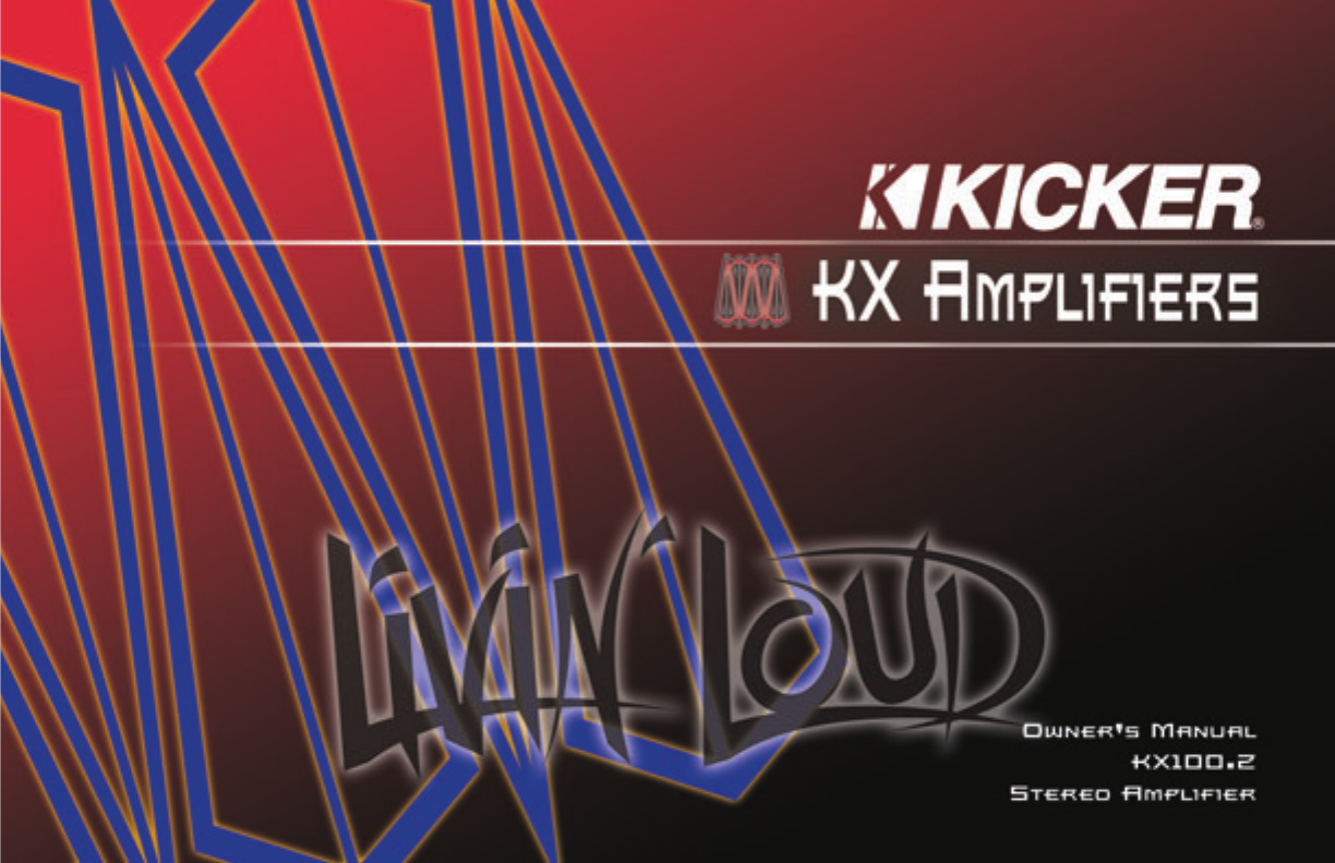 Introduction KX.2 Series Amplifier Owner’s Manual KX100.2 Two Channel Model: 2 Attention: Congratulations! Please record your purchase information in the area below. We recommend attaching the original sales receipt to this manual for future reference. If you require service on this speaker during the warranty period, you will need to provide this information and a copy of the original sales receipt to Kicker for validation of warranty repairs.