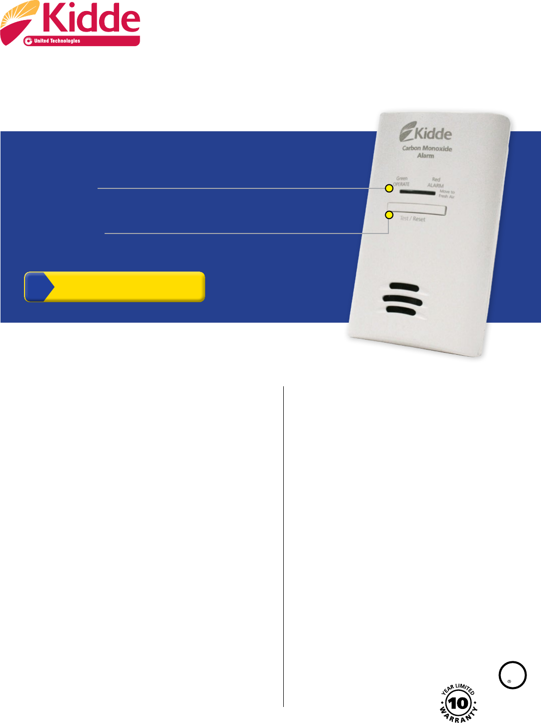 • Loud 85 Decibel Alarm – Alerts of deadly CO gas.