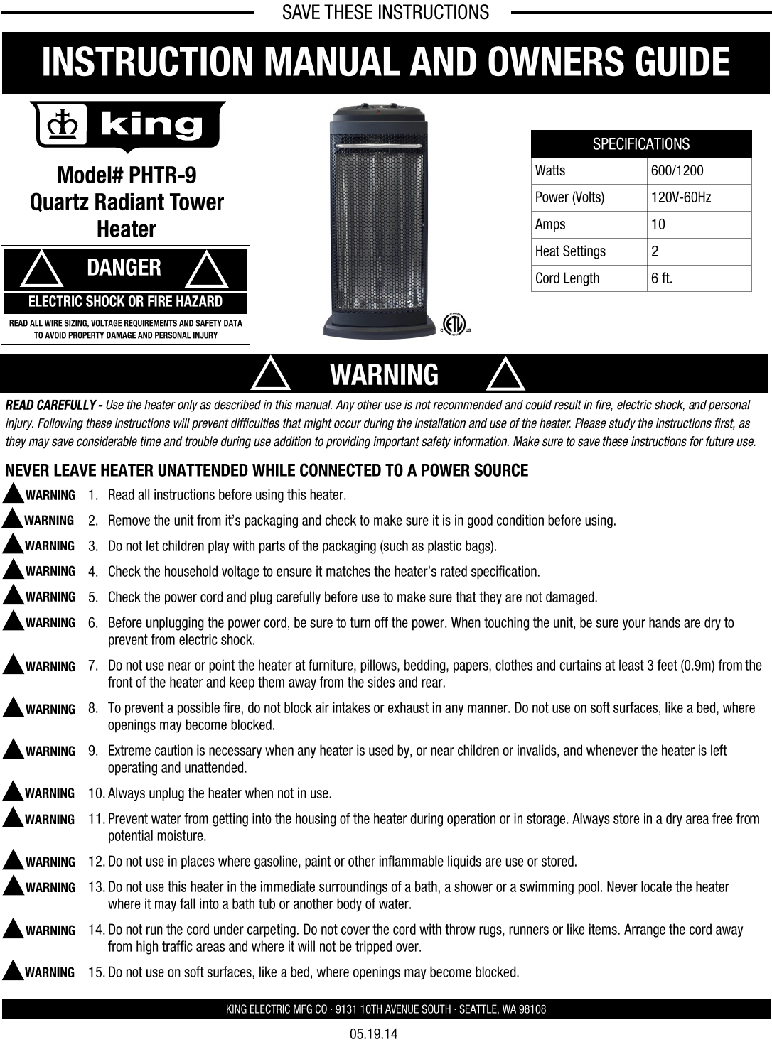 120-Volt Portable Electric Radiant Tower Heater in Black