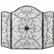 36 in. H/50 in. W Polished Black Wrought Iron 3-Panel Safety Screen Decorative Scroll Spark Guard Cover Fireplace Screen