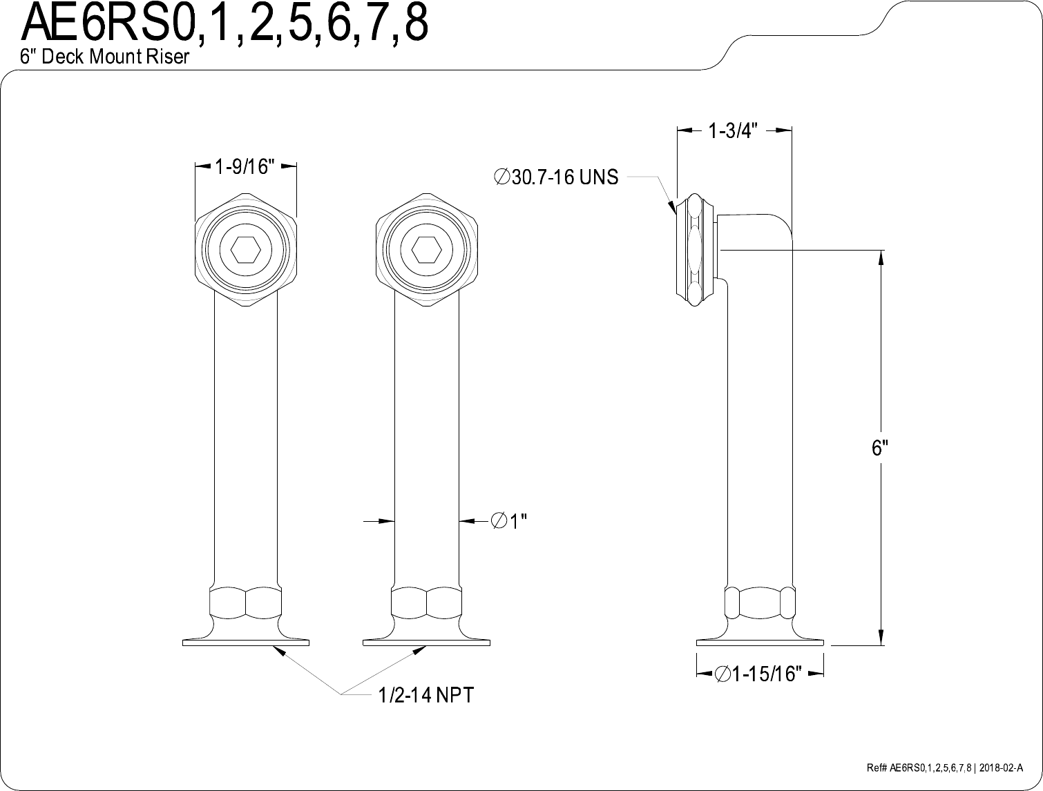 Aqua Eden AE6RS2 6-Inch Deck Mount Riser for Leg Tub Filler, Polished Brass