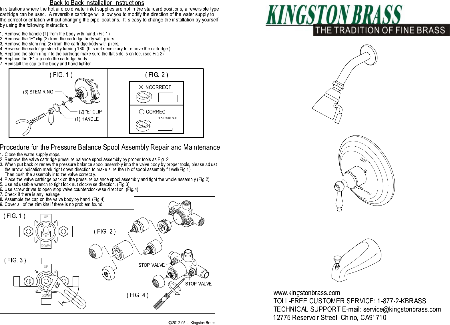 Back to Back installation instructions In situations where the hot and cold water inlet supplies are not in the standard positions, a reversible lye cartridge can be used. A reversible cartridge will allow you to modify the direction of the water supply to the correct orientation without changing the pipe locations. Iris easy lo change the installation by yourself by using the following instruction. 1. Remove the handle (1) loom the body with hand. (Fig.1) 2.