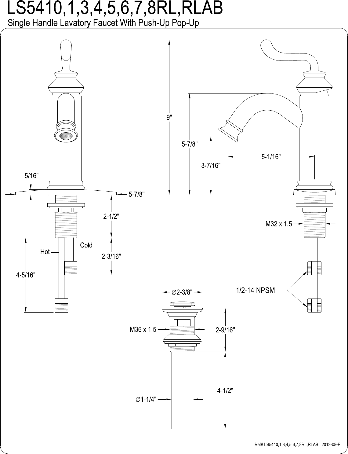 Single Handle Lavatory Faucet With Push-Up Pop-Up _,LAB Il m— 3 [——1 M32x 15 g = SPASM é 20116" 412 114" —= = Rife# LS5410,1,34,5,8,7,8RL,RLAB | 2019-08-F _