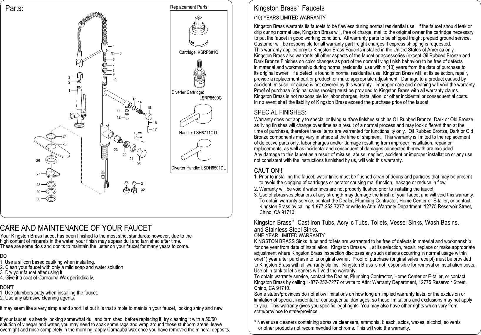 Gourmetier Continental Single-Handle Pre-Rinse Kitchen Faucet, Polished Chrome