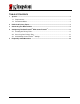 ™ SecureTraveler User’s Manual ™ SecureTraveler is the DataTraveler® configuration utility that allows corporate and home users to set up public and password-protected privacy zones on compatible DataTraveler USB Flash Drives. It also allows users to set Windows shortcuts to launch the program conveniently. This document is designed to get you started with SecureTraveler and includes important frequently asked questions (FAQs). For the latest FAQs, please visit the DataTraveler® website at www.kingston.