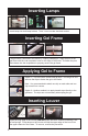 Inserting Lamps Insert lamps into both lamp holders. Twist ¼ turn to make electrical contact. Inserting Gel Frame The gel frame is secured to the fixture by 4 spring-loaded pins. Align the pins of the gel frame with the oval receptacle holes on the edge of the fixture. Pull back the pins and release into the receptacles to properly secure the gel frame. Applying Gel to Frame Option 1 – The Gel Frame comes with gel clips. Cut the gel to size and use the clips to fasten the gel to the frame.