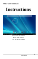 MID User manual Music list Current Playing Loop playback Random play Repeat Single Pause Play the last song Play the next song Play Audio Volume- & Volume+ Note: Audio player can play WAV audio files. 5.1.2 Video In the application menu or on the desktop, tap the icon to enter the video and picture player interface, Double click the movie you’d like to start playing: Video formats support : MPEG-1 , MPEG-2,MPEG-4,H.263, H.
