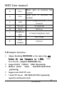 MID User manual Video Function Photo Browse E-book Wi-Fi Headset max. output ( L ) 5mW + ( R ) 5mW MP3 Bit rate WMA, WMV, Bit rate Frequency response SN ratio Distortion 8Kbps ~ 392 Kbps (32Ohm) 5Kbps ~ 192 Kbps 20Hz ~ 20KHz 90dB <0.05% Play format MPEG-1 , MPEG-2,MPEG-4,H.263, H.264, AVS, VC-1, RV,etc. Max Resolution 1920*1080 Ratio 4: 3、16: 9、full screen optional. Support JPG、JPEG、BMP、GIF、PNG、JFIF, max resolution support: 8000*8000. Format Max.