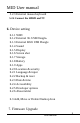 MID User manual 5.2.3 External mouse/keyboard 5.2.4 Connect the HDMI and TV 6. Device setting 6.1.1 WIFI 6.1.2 External 3G USB Dongle: 6.1.3 External RJ45 USB Dongle 6.1.4 Sound 6.1.5 Display 6.1.6 Screen shot 6.1.7 Storage 6.1.8 Battery 6.1.9 Apps 6.2.0 Location & security 6.2.1 Language & input 6.2.2 Backup & reset 6.2.3 Date & time 6.2.4 Accessibility 6.2.5 Developer options 6.2.6 About tablet 6.3 Add, Move or Delete Desktop Icon 7.