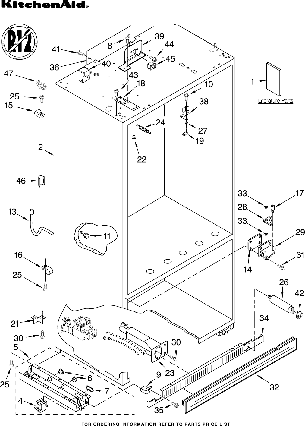 CABINET PARTS 36" BOTTOM MOUNT BUILT IN REFRIGERATOR For Models: KBLS36FKB02, KBLS36FKT02, KBLS36FKW02, KBLS36FKX02 (Black) (Biscuit) (White) (Etched Aluminum) 6−03 Litho In U.S.A. (kdj) 1 Part No.