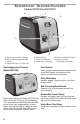 KITCHENAID® TOASTER FEATURES Models KMT222 and KMT422 B C D E A F G A. Dial shade control (7 settings) B. Self-centering cage and steel interior C. Extra-wide slots (1.5" [3.8 cm]) D. Digital display E. High-lift lever F. Under base cord wrap Dual Independent Controls (Model KMT422) G. Special toasting functions Feature not shown: Removable crumb tray Heat System Heavy gauge heating elements mounted on extra-thick boards are installed in the toaster to ensure even browning.