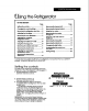 Using the Refrigerator In This Section Page Page Setting the controls ................................... 7 Removing the freezer shelf ..................... 13 Changlng the control settings .................. 8 Removing the freezer baskets ............... 13 Removing the refrlgeratot door blns .......8 Uslngthe Ice maker ................................ 13 Adjusting the bin glldes ............................ 9 Removing the ice maker storage bln ...............................................