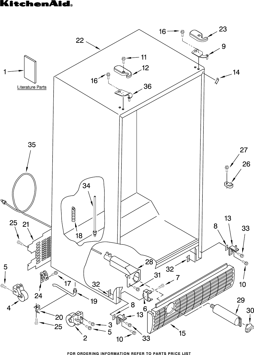 CABINET PARTS For Models: KSRS25CNWH00, KSRS25CNBT00, KSRS25CNBL00, KSRS25CNSS00, KSRS25CNLK00 (White) (Biscuit) (Black) (Stainless Steel) (Lake Blue) Illus. No. Part No. DESCRIPTION LITERATURE PARTS 1 2305642 Energy Guide 2305802 Use & Care Guide 2301270 Service & Wiring Sheet 2220407 Modular Icemaker Service Sheet Following May Be Purchased Illus. No.