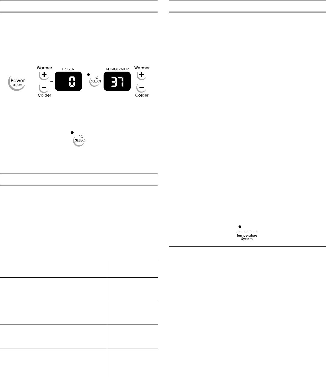 sont 0°F (-18°C) pour le congélateur et 37°F (3°C) pour le