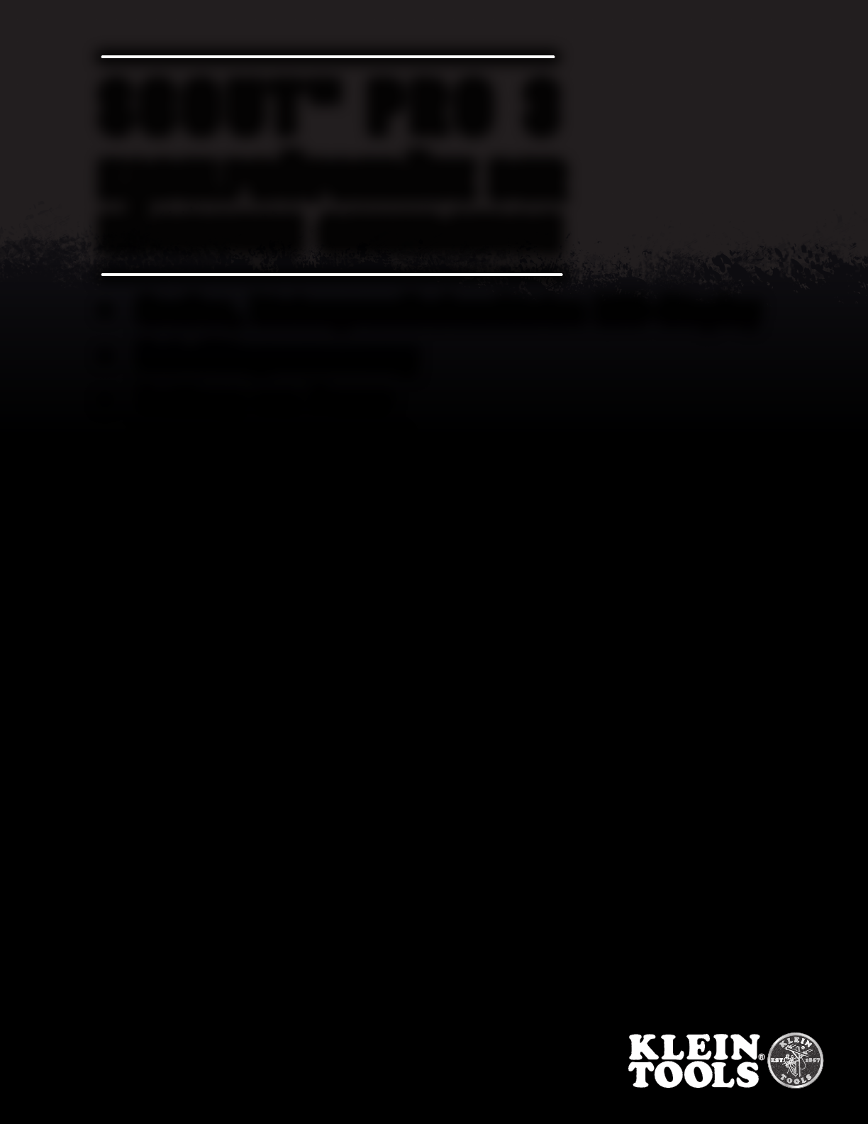 SCOUT™ PRO 3 KABELPRÜFGERÄTE Diese Scout Pro™ Kabelprüfgeräte der nächsten Generation für Daten-, Video- und Sprachdaten prüfen und orten Kabel, messen die Kabellänge und können noch vieles mehr. In drei verschiedenen Kitvarianten passend für Ihre Anforderungen erhältlich. • Prüft Koaxialverbindungen und Kabel für Sprache (RJ11/12), Daten (RJ45) und Video (F-Steckverbindung) • Misst Kabellängen bis 610 m (2000 Fuß) • Einige Modelle erkennen, identifizieren und prüfen Power-over-Ethernet (PoE).