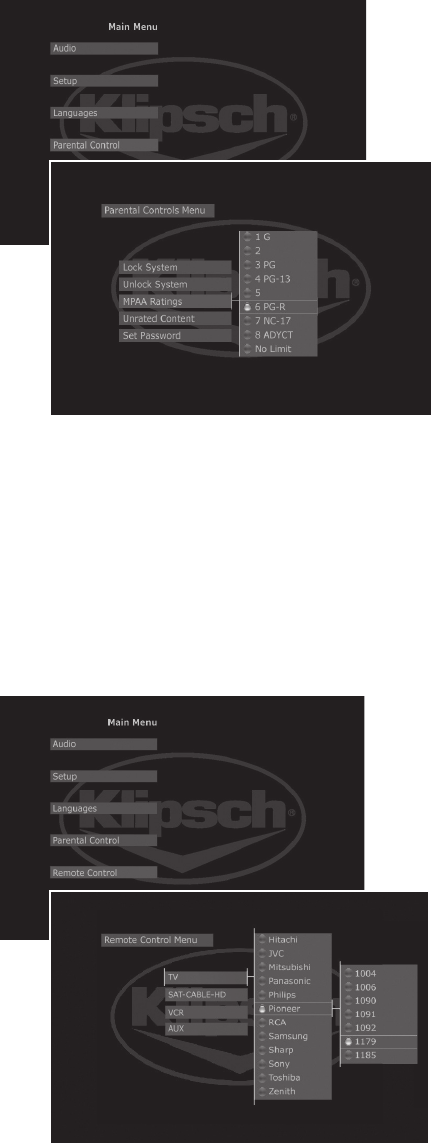 interviews with actors, etc., is unrated. In this menu, tell the Klipsch system
