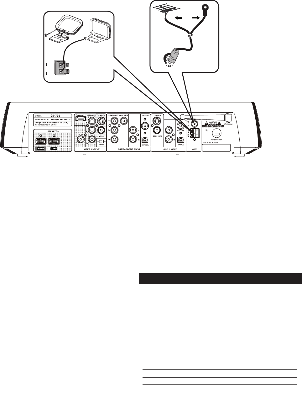 indoor antennas. To add an outdoor antenna, consult a qualified installer.