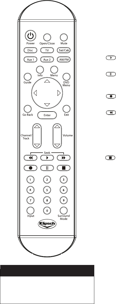 Switches the Klipsch unit to SAT/CAB INPUTS. When the