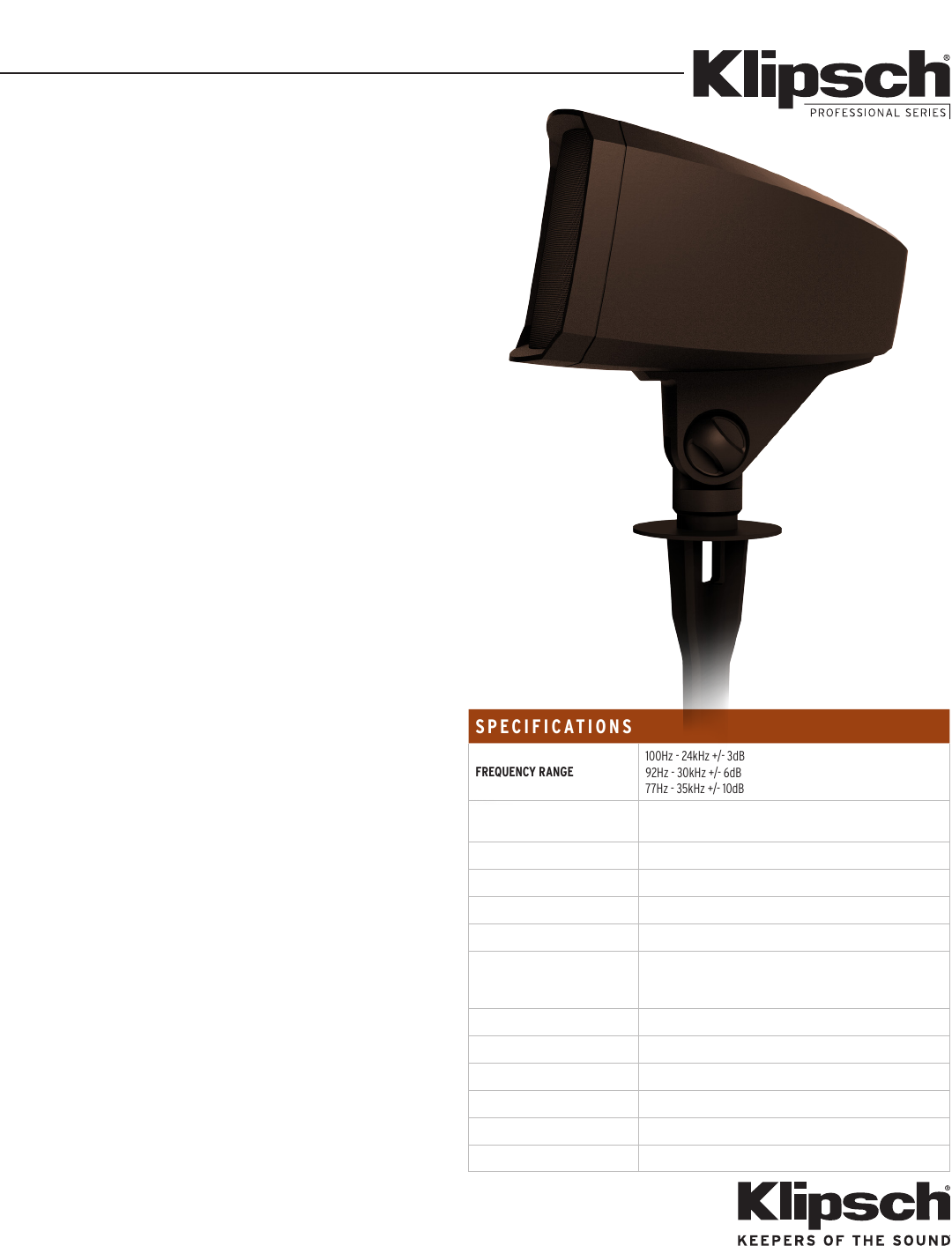 All specifications are subject to change without notice. ©2016 Klipsch Group, Inc. Klipsch, Keepers of the Sound and Tractrix are