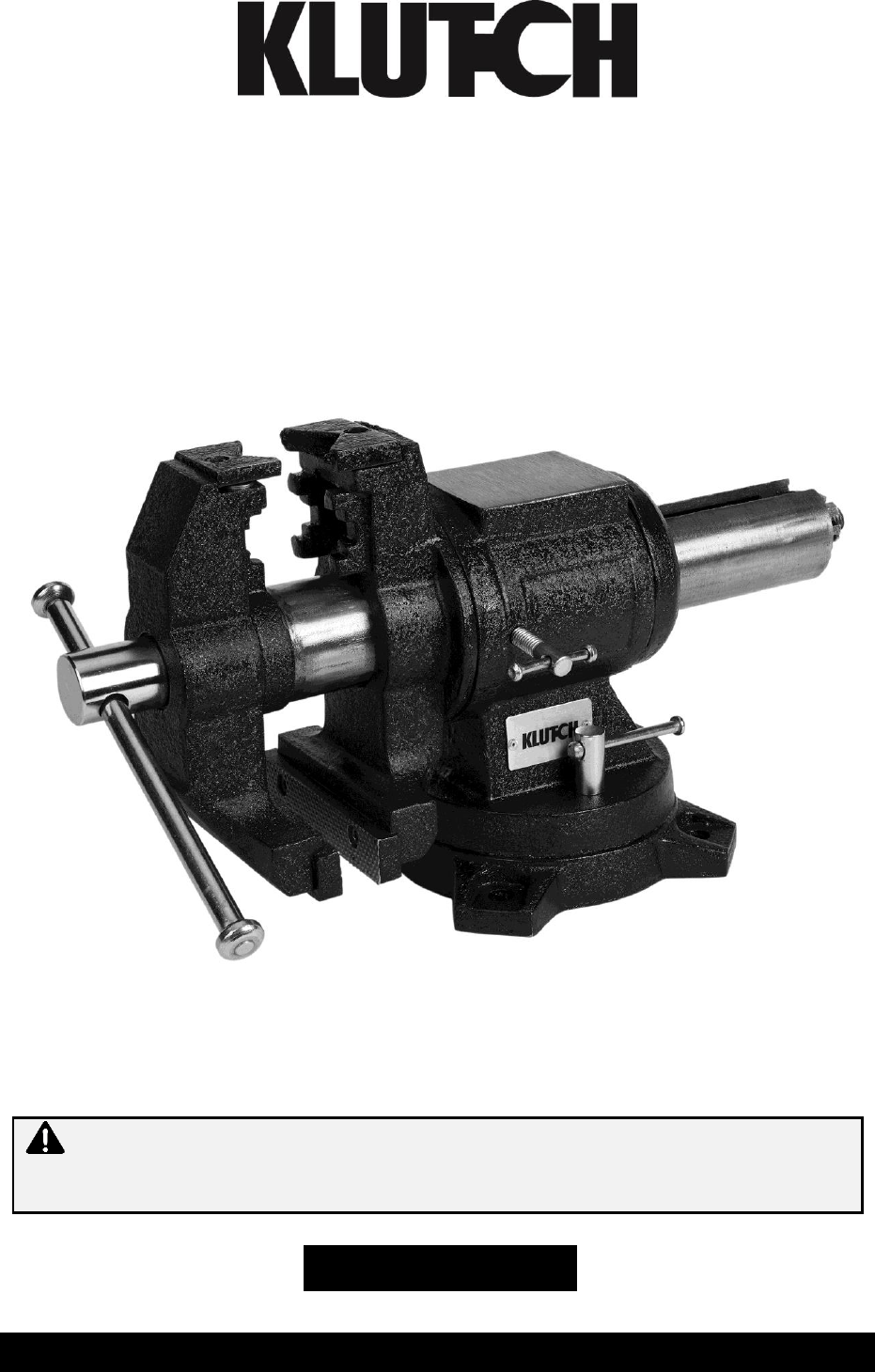 Thank you very much for choosing a Klutch™ product! For future reference, please complete the owner’s record below: Serial Number/Lot Date Code (if applicable): _____________________ Purchase Date: ____________________________________________ Save the receipt, warranty, and this manual. It is important that you read the entire manual to become familiar with this product before you begin using it. This bench vise is designed for certain applications only.