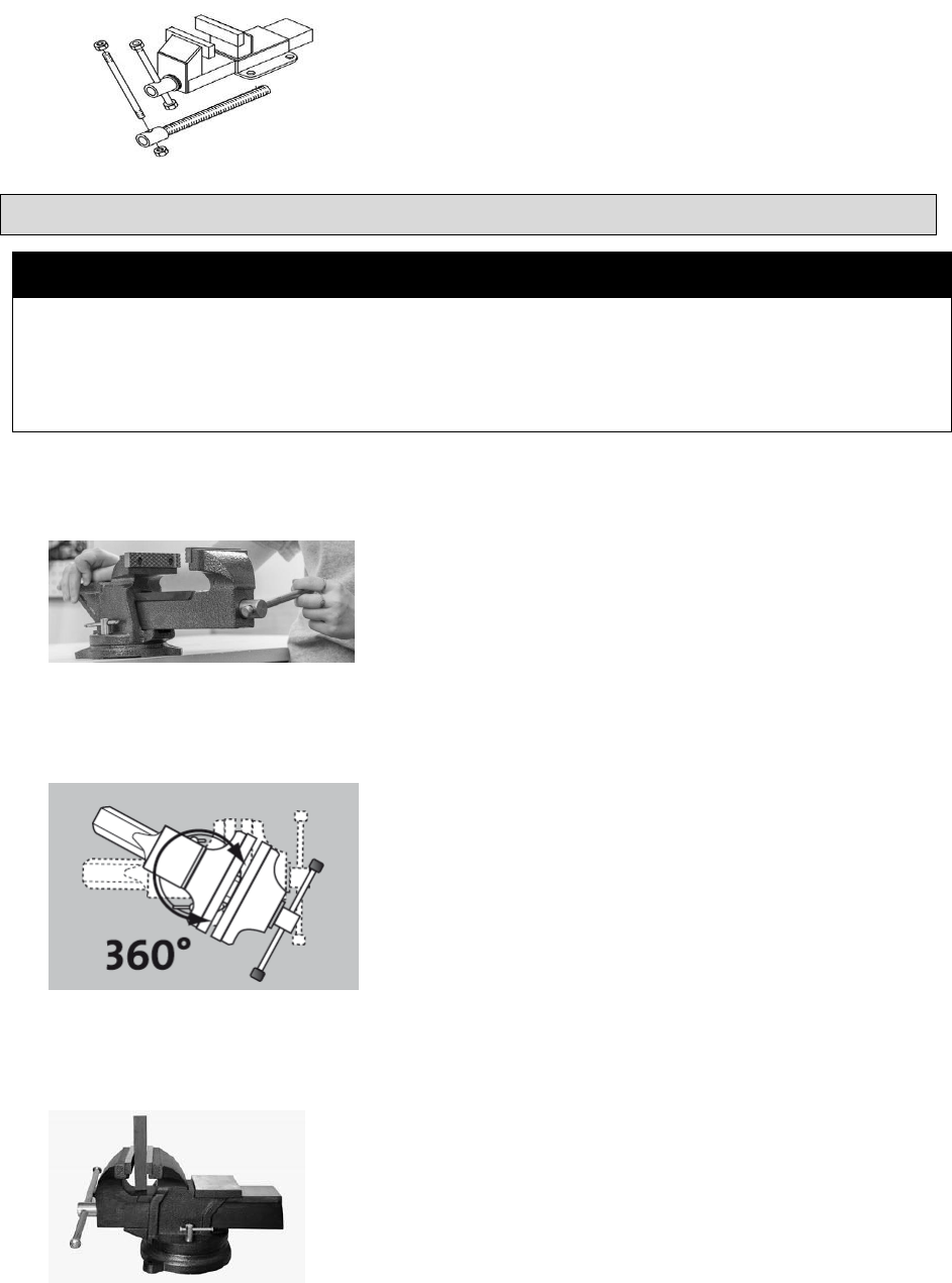 • Never use a hammer, pipe extension or cheater bar on spindle handle of vise.