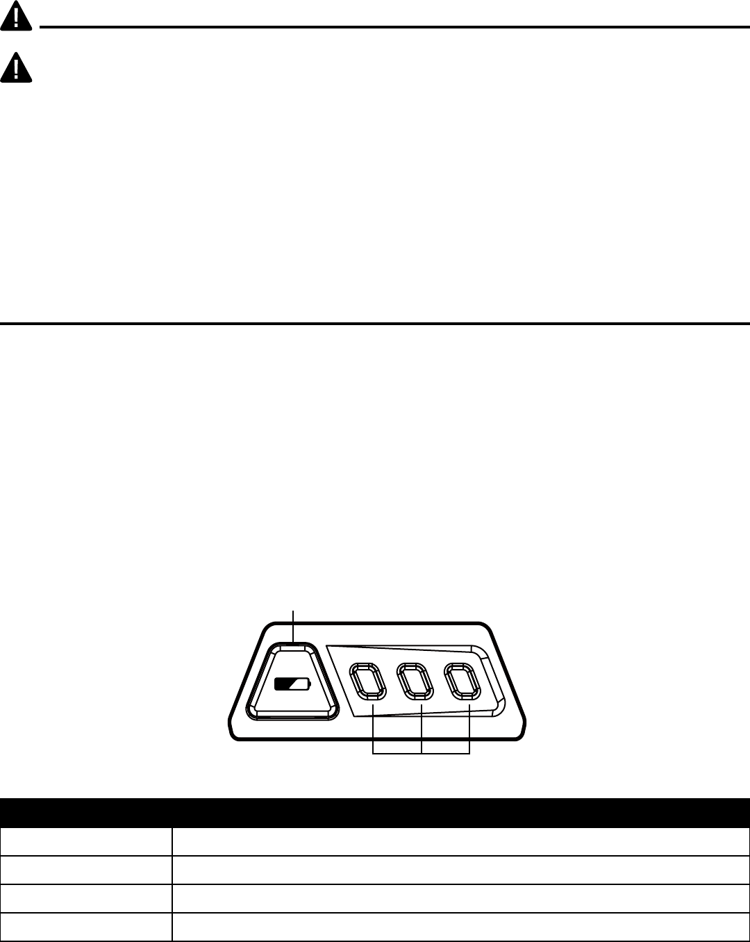 1 Green Light The battery is below 35% capacity and requires charging soon.