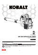 ITEM # 0533631 80V BACKPACK BLOWER MODEL # KBB 600B-06 Español p. 17 ATTACH YOUR RECEIPT HERE Serial Number Purchase Date Questions, problems, missing parts? Before returning to your retailer, call our customer service department at 1-888-3KOBALT (1-888-356-2258), 8 a.m. - 8 p.m., EST, Monday - Friday.