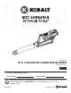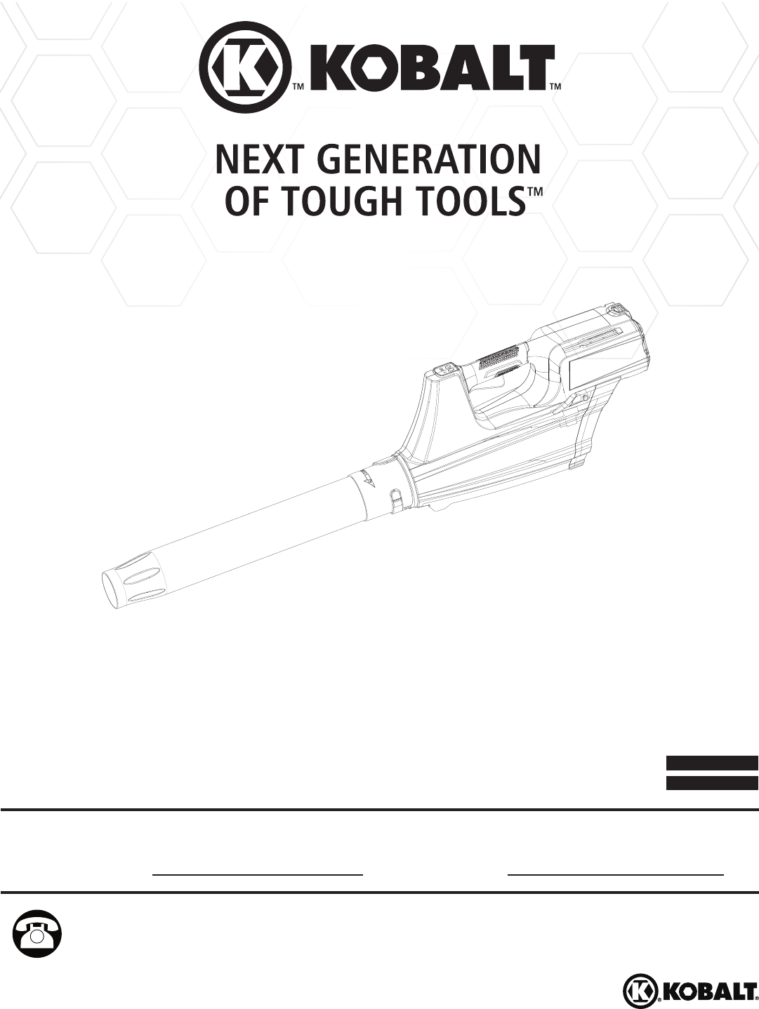 ITEM #0419016 80 V LITHIUM-ION CORDLESS BLOWER MODEL #KHB 400B-06 Français p. 12 Español p. 23 ATTACH YOUR RECEIPT HERE Serial Number Purchase Date Questions, problems, missing parts? Before returning to your retailer, call our customer service department at 1-888-3KOBALT (1-888-356-2258) 8 a.m. - 8 p.m., EST, Monday - Friday. kobalttools.