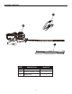 OPERATING INSTRUCTIONS WARNING • Verify that the trigger is in the OFF position before connect to the power source. To turn on and off: 1. Connect machine to the power source. 2. Place one hand on the trigger handle. Place the other hand on the auxiliary handle (B). 3. Press the lock-out button (G) toward the handle and hold. 4. Squeeze the trigger (H). The hedge trimmer will turn ON. 5. Release the lock-out button (G).