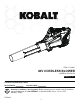 ITEM # 1130007 40V CORDLESS BLOWER MODEL # KB 3040-06 Español p. 15 ATTACH YOUR RECEIPT HERE Serial Number Purchase Date Questions, problems, missing parts? Before returning to your retailer, call our customer service department at 1-888-3KOBALT (1-888-356-2258), 8 a.m. - 8 p.m., EST, Monday - Friday.