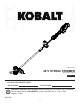 CARE AND MAINTENANCE 4. Inspect spool cap and line to ensure that there is an adequate amount of line and that no damage is present on the spool cap. TROUBLESHOOTING If you still have questions or an unresolved issue after going through this troubleshooting guide, or just want to speak to a Kobalt product expert, please call our customer service department at 1-888-3KOBALT (1-888-356-2258), 8 a.m. - 8 p.m., EST, Monday – Friday. PROBLEM Motor fails to start when switch trigger is depressed.