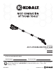 PRODUCT SPECIFICATIONS SPECIFICATIONS Cordless, Battery-powered 40 V Lithium-ion 8 in. (20.3 cm) 3/8 in. (9.5 mm) 91PJ033 080NDEA318 7.96 lbs. (3.6 kg) Type Battery Bar Length Chain Pitch Chain Type Guide Bar Type Weight PACKAGE CONTENTS E A B C PART A B C D E D DESCRIPTION Handle pole Extension pole Power head pole Battery Charger QUANTITY 1 1 1 1 1 kobalttools.