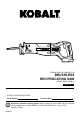ITEM #0672831/0672826/0877730 BRUSHLESS RECIPROCATING SAW MODEL #KRS 1824B-03 Español p. 17 ATTACH YOUR RECEIPT HERE Serial Number Purchase Date Questions, problems, missing parts? Before returning to your retailer, call our customer service department at 1-888-3KOBALT (1-888-356-2258), 8 a.m. - 8 p.m., EST, Monday - Friday.