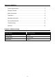 TABLE OF CONTENTS Product Specifications....................................................................................... 2 Package Contents............................................................................................. 3 Safety Information............................................................................................. 4 Preparation........................................................................................................ 8 Operating Instructions................