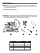 INSTALLING BLADE (FIG. 11, 12, 13) Unplug the miter saw before changing/installing the blade. 13 7 ● Install a 7-1/4 in. blade with a 5/8 in. arbor, making sure the rotation arrow on the blade matches the clockwise rotation arrow on the upper guard. ● Place the blade collar (6) against the blade and on the arbor. Thread the arbor bolt (4) onto the arbor (Fig. 13) in a counterclockwise direction. IMPORTANT: Make sure the flats of the blade collars are engaged with the flats on the arbor shaft.