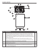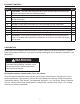 TROUBLESHOOTING PROBLEM POSSIBLE CAUSE Reset mechanism 1. Lack of proper ventilation / room cuts out temperature too high repeatedly or circuit breaker 2. Too many devices on trips repeatedly same circuit 3. Restricted air intake 4. Loose electrical connection 5. Pressure switch shut-off pressure set too high 6. Malfunctioning check valve CORRECTIVE ACTION 1. Move compressor to well-ventilated area. 2. Limit the circuit to the use of only the air compressor. 3. Clean or replace filter element. 4.