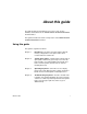 About this guide The guide provides the information you need to set up, operate, maintain, and troubleshoot the KODAK DIGITAL SCIENCE™8650/8650 PS Color Printer. This guide is intended for owners and operators of the KODAK DIGITAL SCIENCE 8650/8650 PS Printer. Using this guide This guide is organized as follows: October 1997 Chapter 1 Introduction—describes the printer and the different memory configurations of the printer. Talks about resident and non-resident fonts.