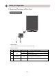 Auxiliaries Confirm the auxiliaries listed below are included. □ AC adapter □ Power supply cord (3P wall type) □ DVI-DVI cable □ Communication cable 1 1 1 1 □ USB cable □ User’s Manual (this manual) NOTES * We recommend you to keep the packing box for transportation and the like. * In case of transporting and packing the unit in the packing box, carefully place it, keeping its panel from touching any objects.