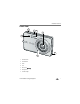Index SD/MMC card, 5 software, 44 internal memory storage capacity, 58 ISO speed, 30 K Kodak EasyShare software installing, 44 upgrading, 58 Kodak Perfect Touch technology, 16 Kodak Web sites, 53 L language, 33 LCD brightness, 32 dimmer, 32 reviewing pictures, 13 reviewing videos, 13 lens, i cleaning lens, 57 loading battery, 1 SD/MMC card, 5 software, 44 long time exposure, 28 M Mac OS, installing software, 44 macro/landscape button, ii magnify a picture, 13 maintenance, camera, 57 make picture from video