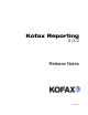 Chapter 1 About This Release This set of release notes contains important information not included in other Kofax Reporting documentation. Please read these notes carefully before you install, upgrade, or use this product. Additional information on integrating Kofax Reporting with other Kofax applications can be found in the Kofax Product Support for Kofax Reporting document, available from the support area of the Kofax Web site www.kofax.com. Version Information The Kofax Reporting 2.0.