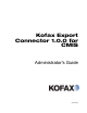 Preface This guide includes the information you need to successfully install Kofax Export Connector for CMIS and set it up for use with Kofax Capture or Kofax Express. Related Documentation Help for Kofax Export Connector for CMIS Provides online assistance for system administrators and operators who are responsible for configuring the export connector. Kofax Export Connector for CMIS Release Notes Includes late-breaking product information that is not included in other documentation.