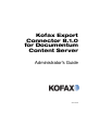 Administrator's Guide This document gives you information about installing Kofax Export Connector for Documentum Content Server, which exports document images, OCR full text files, PDF documents, eDocuments, and data to a Documentum Content Server repository. Overview With Kofax Export Connector for Documentum Content Server, batches are processed based on export settings. Documents and index data are exported to your repository based on the settings defined during export setup.