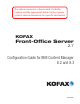 Kofax Front-Office Server Configuration Guide for IBM Content Manager 8.2 and 8.3 Technical Support For additional technical information about Kofax products, visit the Kofax Web site at www.kofax.com and select an appropriate option from the Support menu.