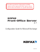 Kofax Front-Office Server Configuration Guide for Microsoft Exchange Introduction This guide shows how to configure Kofax Front-Office Server to send documents by email through a Microsoft Exchange server. When you release a document to email, index fields appear for entering recipient email addresses, a subject, and any message you want to provide.