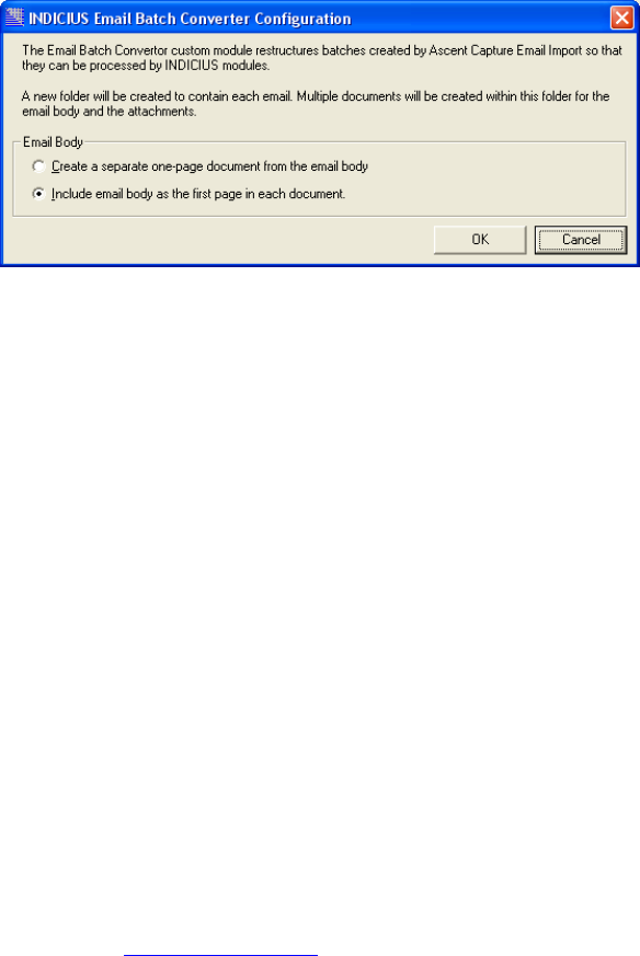 The INDICIUS Email Batch Converter configuration dialog will then be displayed,